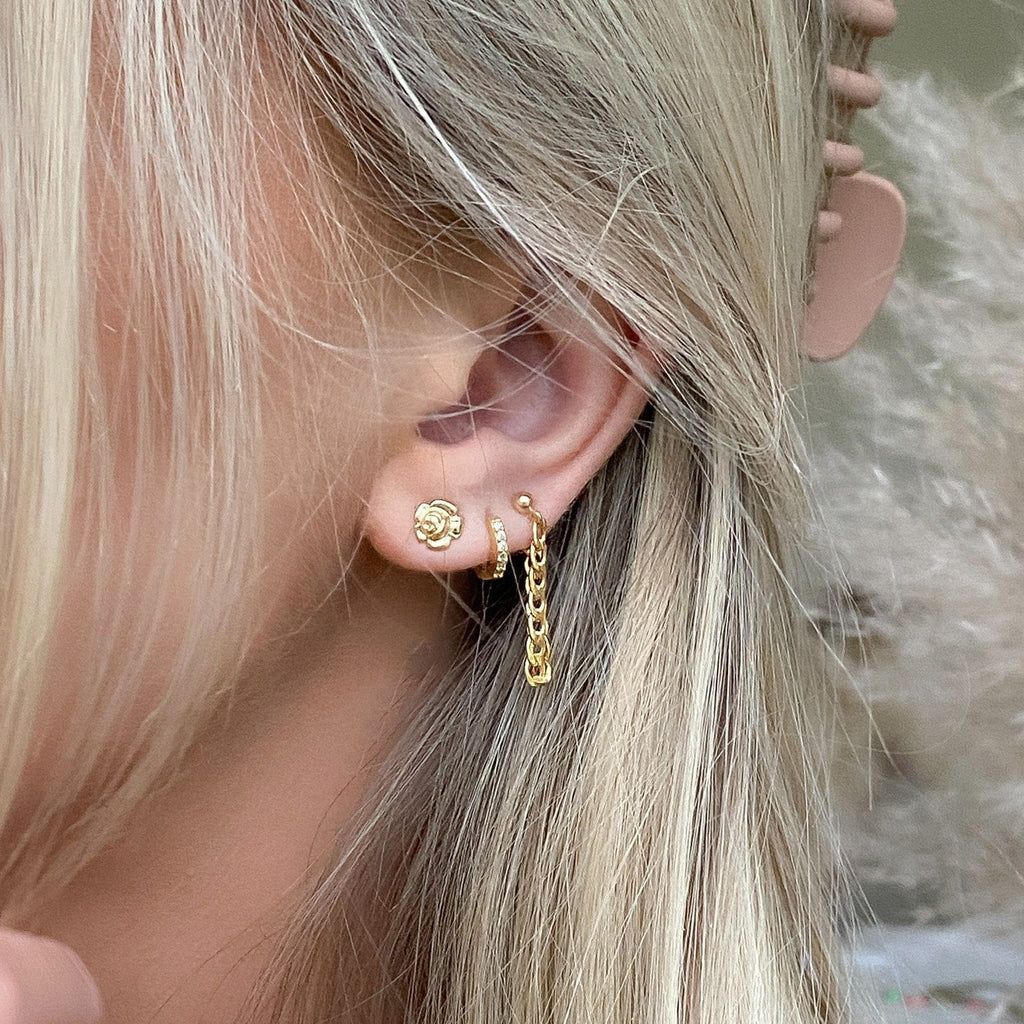 Petits clous de boutons de rose remplis d’or 14 carats.