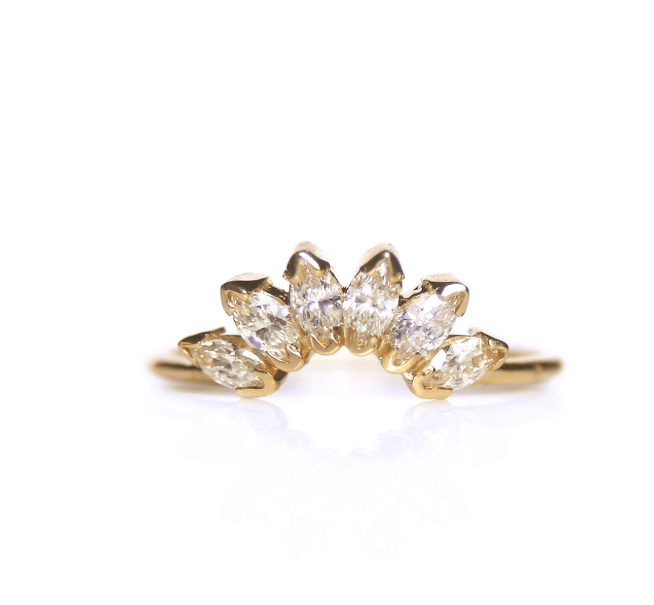14k Gold Curved Diamond Wedding Band - xohanalei