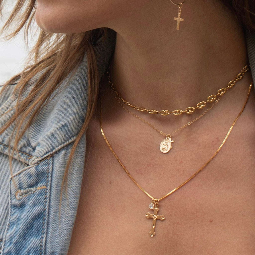 Cette grande croix ornée fera assurément sensation avec sa magnifique breloque dorée. Montrez votre foi avec ce superbe accessoire qui ne passera pas inaperçu !
