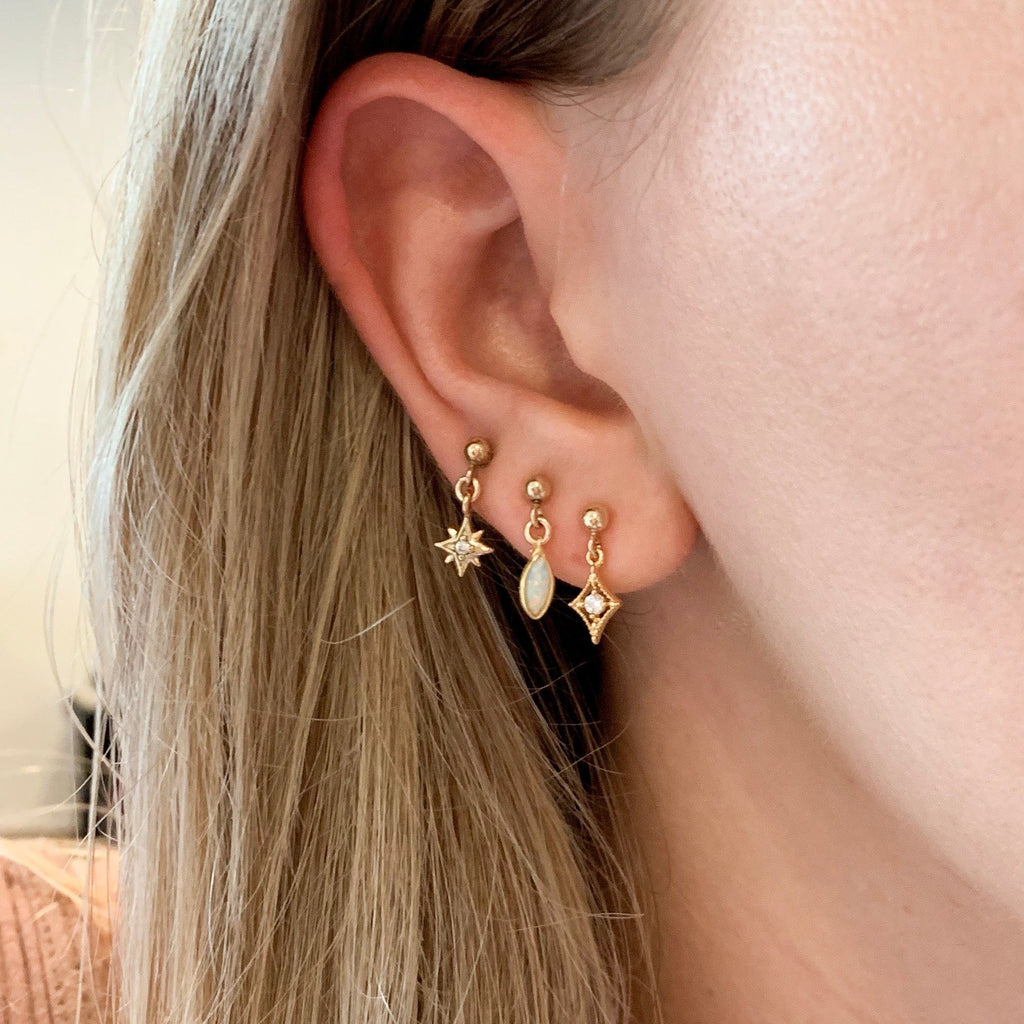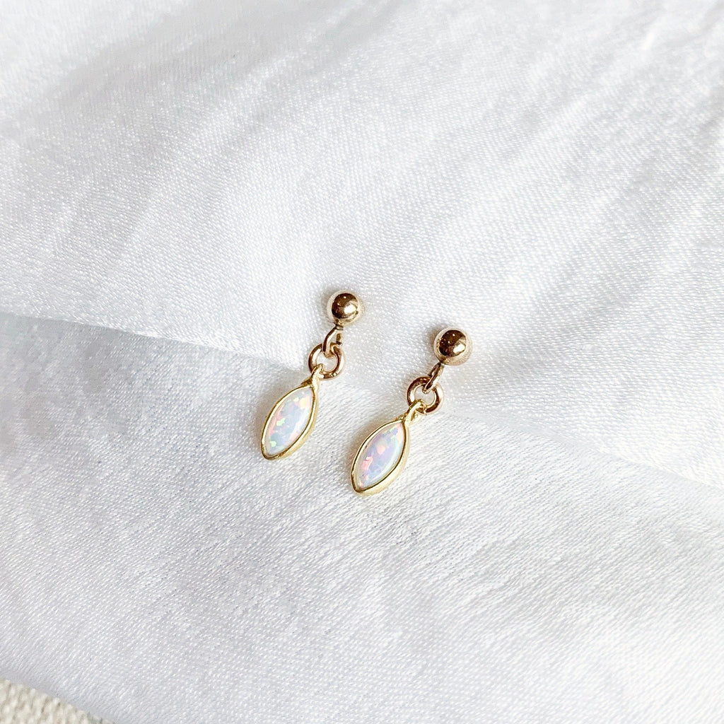 Clous à billes de 3 mm remplis d'or 14 carats avec breloques en opale s/m.