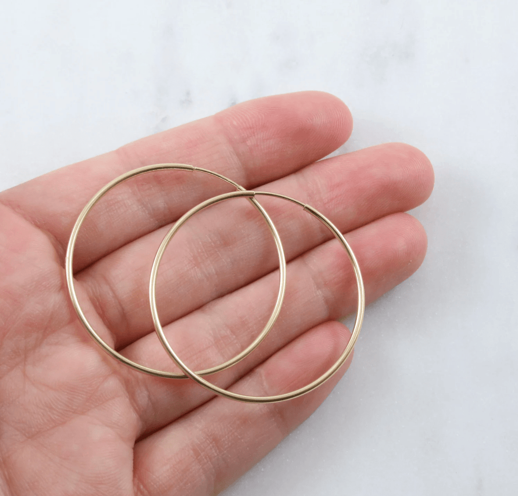 These 40mm ultra-thin endless hoops are as effortless as they come. Lightweight, waterproof, and hypoallergenic, they’re made for all-day, everyday wear. Whether you're heading to the beach or brunch, these classic hoops add just the right touch of shine.