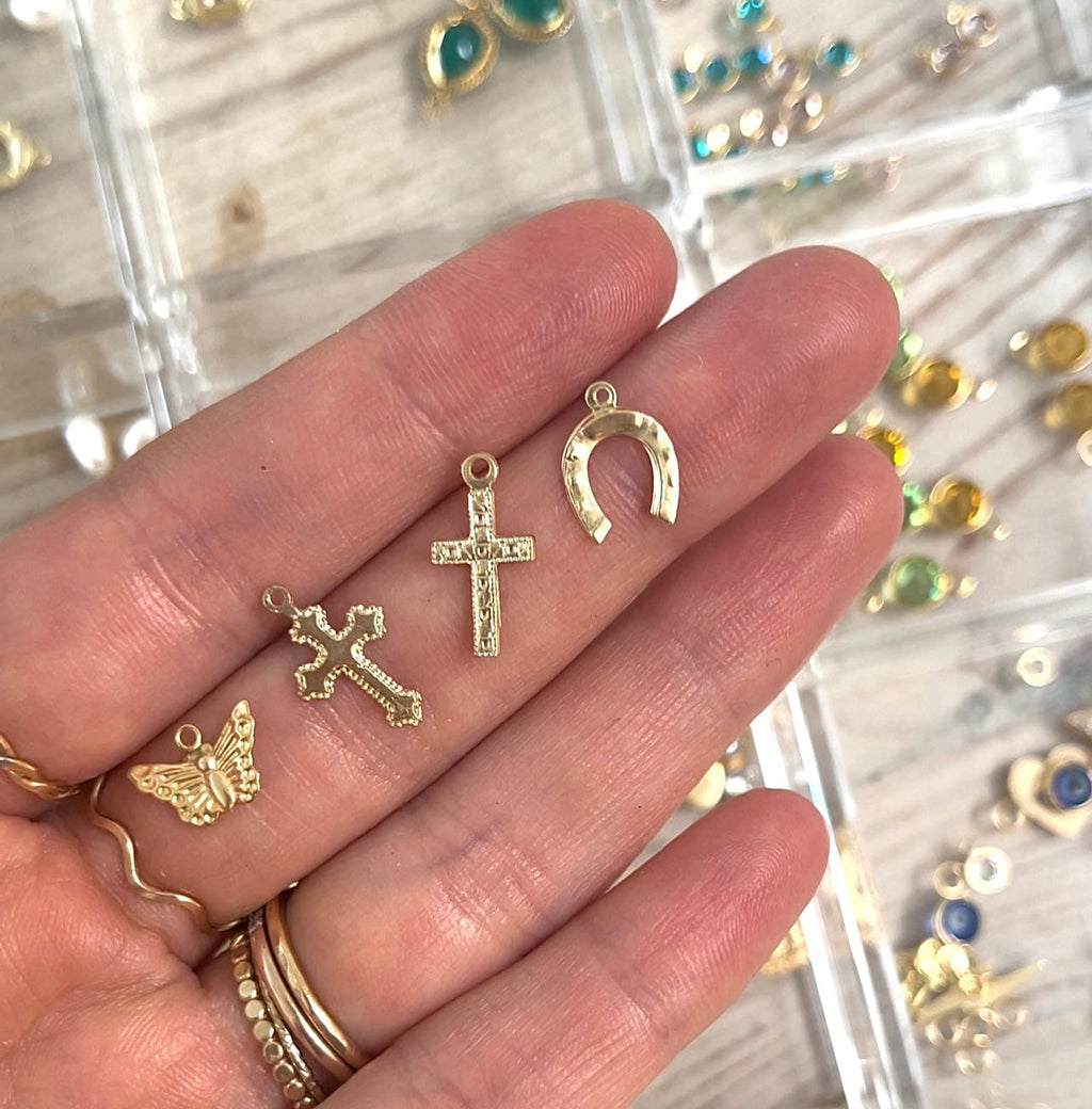 Canalizza la tua cowgirl costiera interiore con il fascino del ferro di cavallo: niente scherzi! Realizzato con metallo riempito in oro 14k di alta qualità, questo ciondolo a ferro di cavallo ti porterà fortuna (o almeno avrà un bell'aspetto) ad ogni indosso. È un vero gioiello!