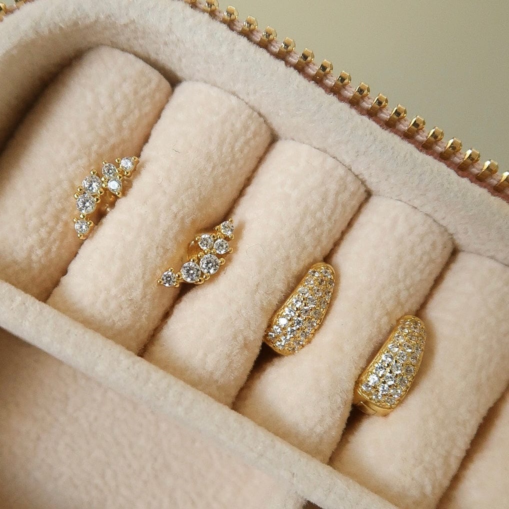 Crafted in luxurious 18k gold vermeil over a solid 925 sterling silver base, the Carina Minis offer elevated shine with lasting quality. Their lightweight feel and secure hinge closure make them perfect for daily wear, stacking, or adding a touch of elegance to any look.