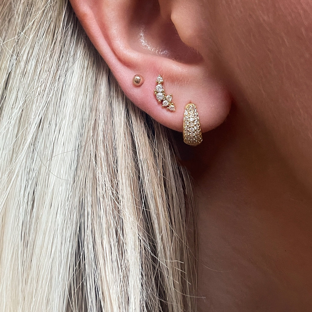 Meet your new go-to pair. The Mini Carina Pavé Earrings are a modern take on classic mini hoops, featuring a tapered silhouette and a front-facing pavé design that catches the light with every move. Delicate, refined, and impossibly sparkly — these are the effortless everyday earrings you’ll keep reaching for.