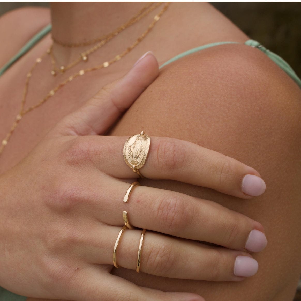 Our best selling ring that you never need to take off! This double band ring won't tarnish in the water or turn your finger green. Made with 14k gold filled metal and hand formed to perfection.