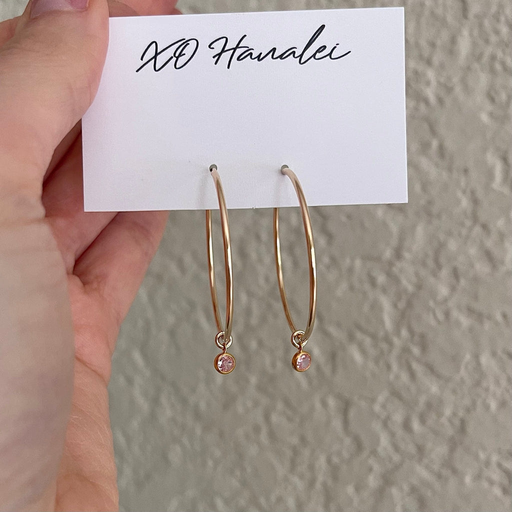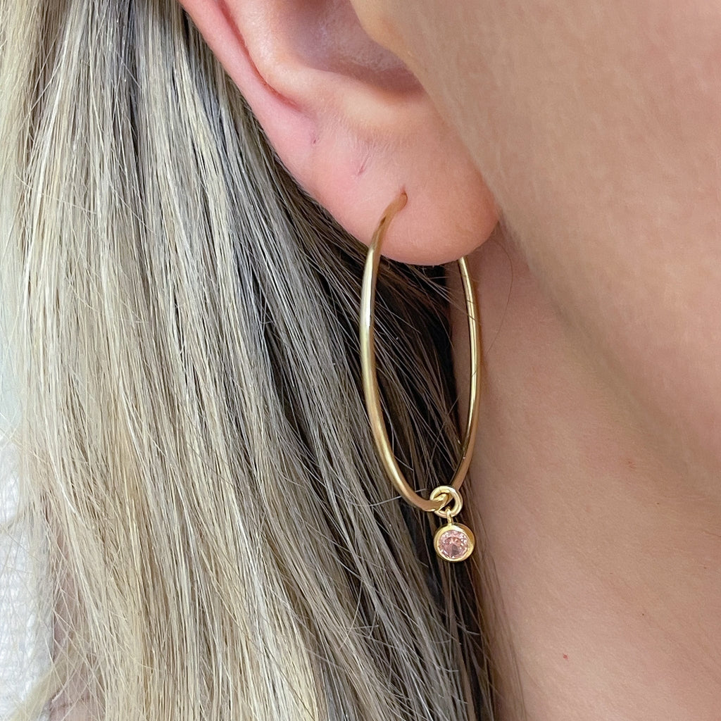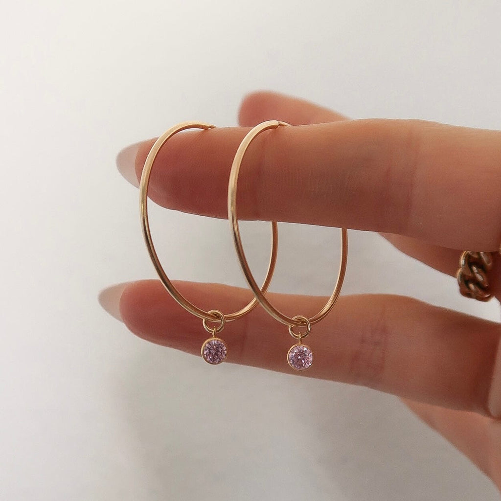 They measure 35mm across with 2 detachable 14k gold filled pink cz charms.